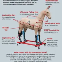 Der robuste und detailgetreue Pferde-Trainingsdummy ist ideal für praxisnahe Übungen bei Tierrettungseinsätzen. Gefertigt aus hochfestem Kunststoff, wird er weltweit von Rettungseinheiten, Tierkliniken und Ausbildungszentren eingesetzt. Dank beweglicher Gliedmaßen lassen sich unterschiedliche Rettungsszenarien realistisch simulieren. Die verstellbare Ohrenstellung dient zur Darstellung verschiedener Mimiken. Inklusive stabilem Transportwagen. Alle Metallteile sind verzinkt und langlebig verarbeitet.